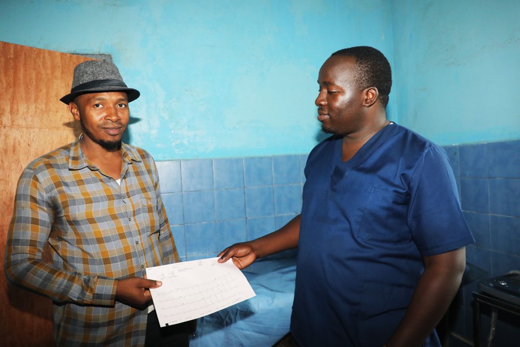 Mtaalamu wa vipimo vya moyo wa Taasisi ya Moyo Jakaya Kikwete (JKCI) Gerson Mpondo akimkabidhi mkazi wa kisiwa cha Anjouan Soufiane Mohamed majibu ya kipimo cha kuangalia mfumo wa umeme wa moyo unavyofanya kazi wakati wa kambi maalumu ya madaktari bingwa wa magonjwa mbalimbali kutoka Tanzania iliyokuwa inafanyika katika hospitali ya Hombo.